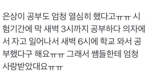 은상이랑 같은 학교인데 수업시간에는 무조건 깨어있다가 수업끝나면 맨날 기절함 ㅋㅋㅋㅋㅋ