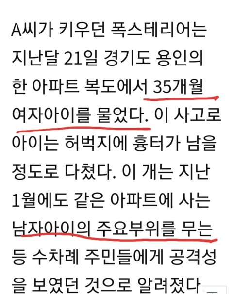 36개월 여자아이를 물어 크게 다치게 함