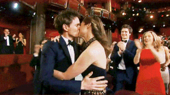 에디 레드메인이 봉사자로 패션쇼 런웨이에 선 것이 만남의 계기.