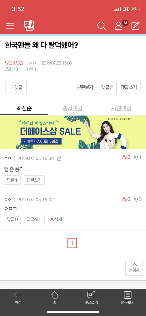 >밑 한국팬들 왜 다 탈덕했어? 여기서(댓도) ㅇㅁㄱ