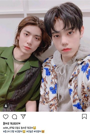 차훈이 잉별에 휘영(본명 영균)이랑 찍은 사진 이렇게 올렸는데