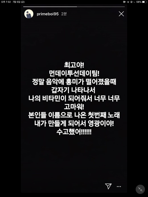 먼투썬 작곡가 인스타스토리봐