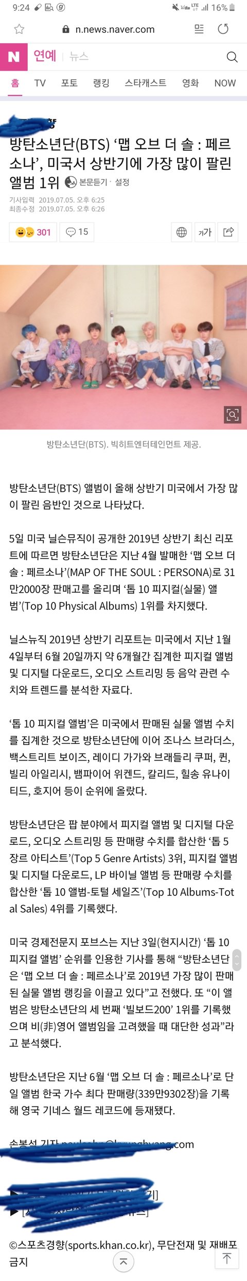 쌀국에서 상반기 가장 많이 팔린 앨범