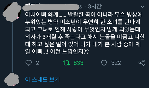 ㄹㅇ들을수록 눈물나 신발 .......처음엔 분명 애들이 팬들한테 이쁘다고 하는건줄알았는데 내새끼 컨평정병존이다 보니까 감정이입되서 너무슬퍼짐