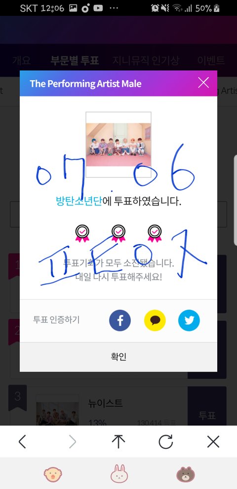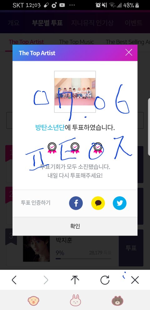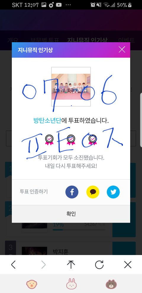 근데 요 며칠 투표 때문에 이삐들이 너무 고생하는게 미안하기도 하고, 투표독려글들이 감동적이어서 나도 G니 앱 깔고 투표를 하는데 이용권 있으면 3표니까.. 결제를 했어