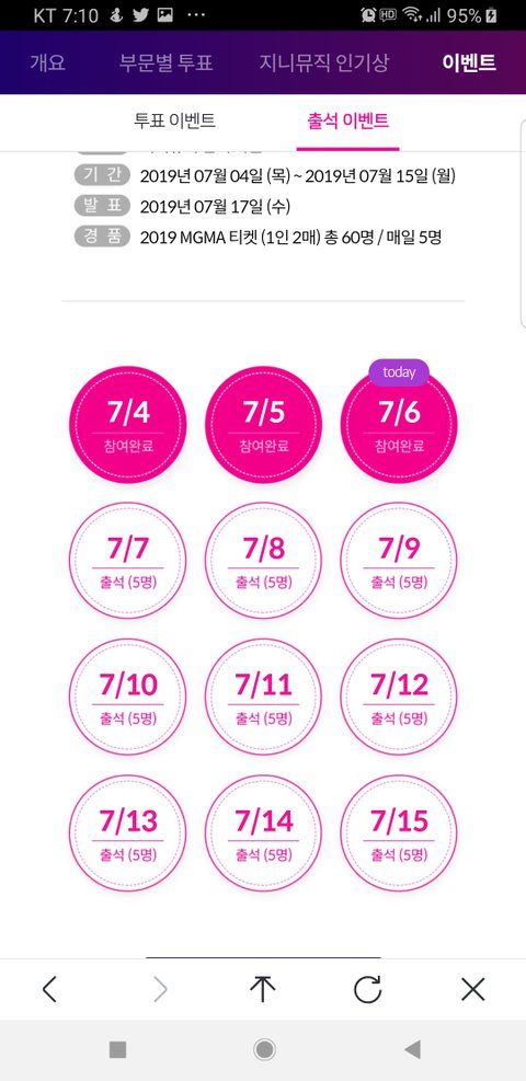 출석체크하면 어제 광탈해버린 표가 생길지도 모른다규 ㅜㅜ