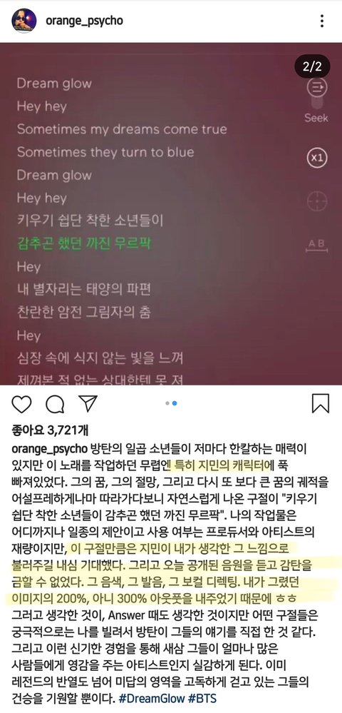 OST 공개당일 박지민 목소리, 태양의파편(지민파트)만 실트 들었음ㅋㅋ 유닛곡 작사작곡가 정바비가 인스타에 지민이 극찬을 해서 화제가 되기도 했었고, 이게 날조기사는 전혀 아니라고 생각함ㅋㅋㅋㅋㅋ