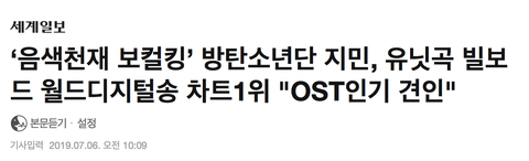 예전에 애국가에 불타 333파트가 나왔을때도 약간 박지민인기 어쩌고 하면서 날조 기사 허위 기사 쓴적 있잖아...