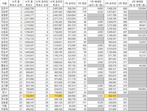 분명 데뷔 멤버 중 X는 누적 투표수로 결정되는데
