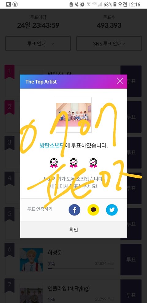 가족들 번호로 계정을 두개 더 만들었는데 아까 컴터로 투표할땐 문제없었거든 근데 앱에선 로그아웃 어떻게 해?? 못찾겠어.. 일단 내거인증할게