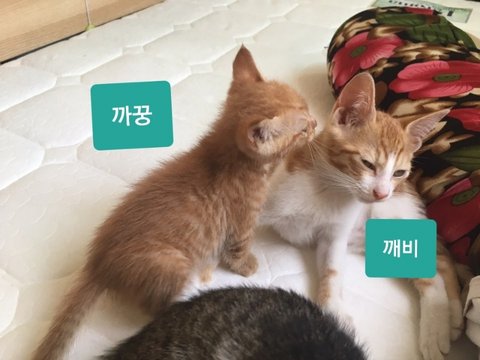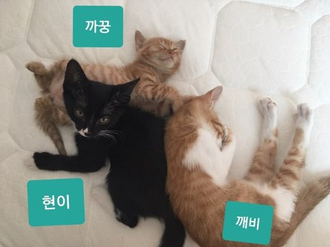 병원에서 길냥이같지 않게 다들 너무 건강하다고 하셨어요. 아이들 모두 강아지보다 더 사람친화적이고, 사랑이 가득하답니다.