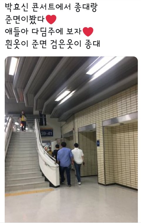 오 어제 준면이랑 종대 팍효씬님 콘서트 갔대