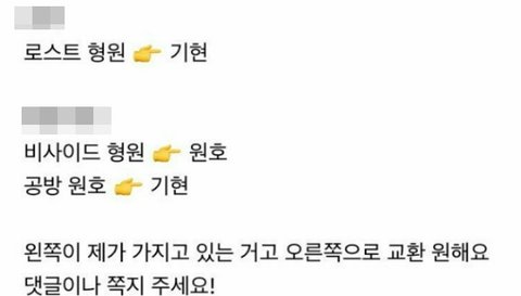 포토 카드를 '형원 포토 가드 기현 포토 가드로 교환'