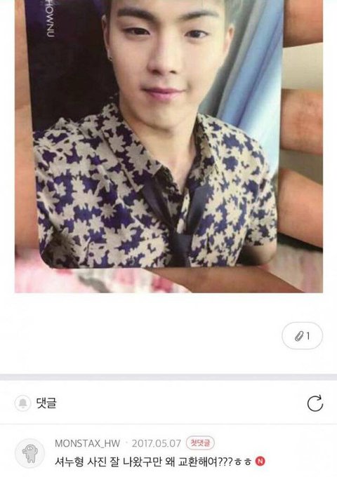 셔누포토카드 사진 잘 나왔는데 왜 교환하냐고 묻는