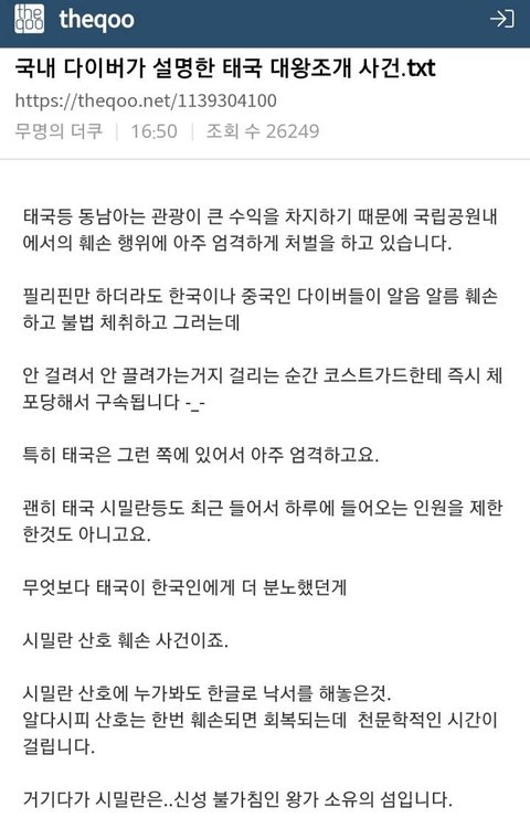펌)국내 다이버가 설명한 태국 대왕조개 사건