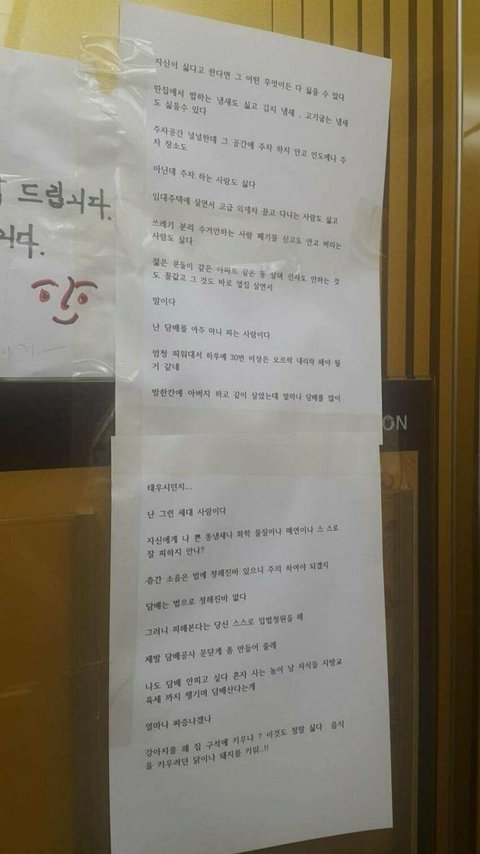 아파트 엘리베이터에 달린 협조문