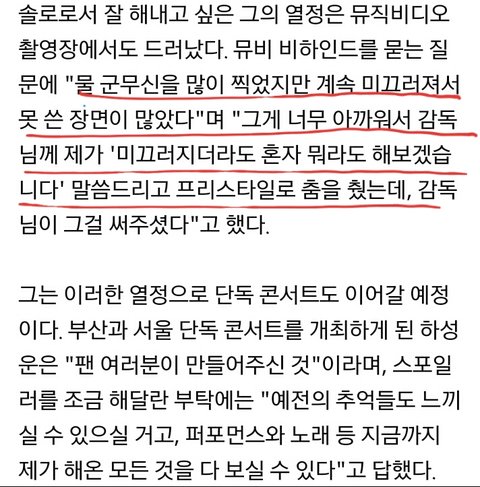 하성운이 진짜 멋있는게 물에서 안무하느라고 계속 미끄러졌는데, 포기하지않고 자기가 미끄러지더라도 뭐라도 하겠다며 혼자 프리스타일로 즉석 안무 춰서 찍었대 역시 무대장인ㅠㅠ 진짜 진국임...좋아할 수밖에 없는 사람이야
