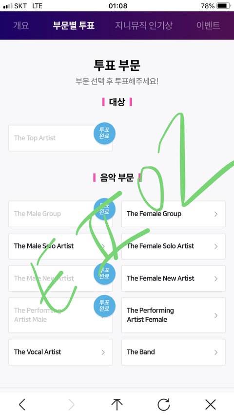 어플없어도 됨. ㄴㅇㅂ나 ㄷㅇ에서 그냥 m.g.m.a(.빼고) 검색해서 공식홈피 - 가입도 필요없이 계정연동(얼굴책,짹,까똑)으로 쉽게 가능! 인기상은 따로 나눠져 있으니 공지 확인해서 찾아보고 툽하기!