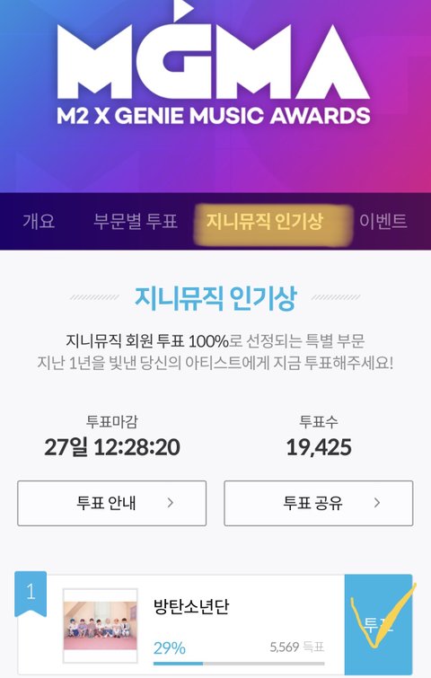 투표방법 : 지.니 뮤직 사이트 or 지.니 어플