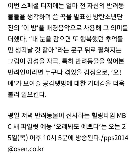 엠B씨 반려동물 파일럿 티저 "이밤" 삽입