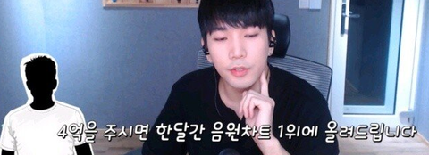 4억을 주면 한달간 음원차트 1위에 고정시켜 줄 수 있다고 얘기함.
