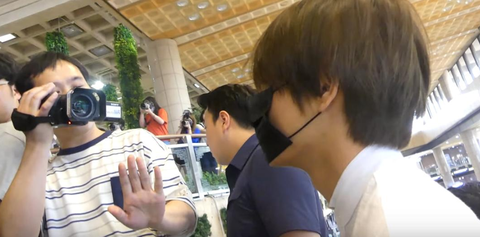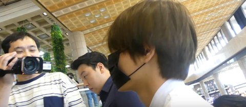 공항에서 기자가 손을 내밀자 바로 악수해주는 뷔