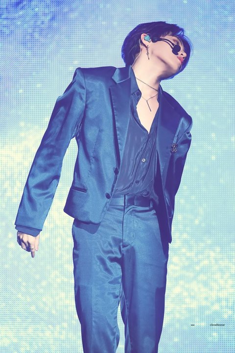 "음악방송 엔딩 무대에서 온 몸을 파란색으로 표현하겠다.
