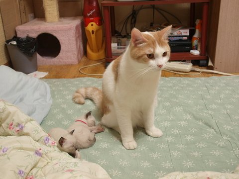 깔아뭉갤까봐 겁나서 같이 잘 수가 없다옹.