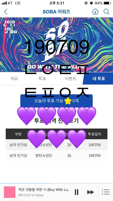 내가 듣고 투표하는 음원사이트 충분히 많다고 생각해서 지금까지 소바는 다른 이삐들에게 맡겼는데 이제 안 그러려고