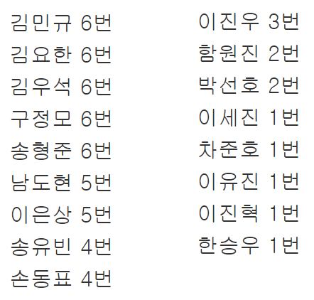 1~8주차 데뷔조에 한번 이상 들었던 연습생들
