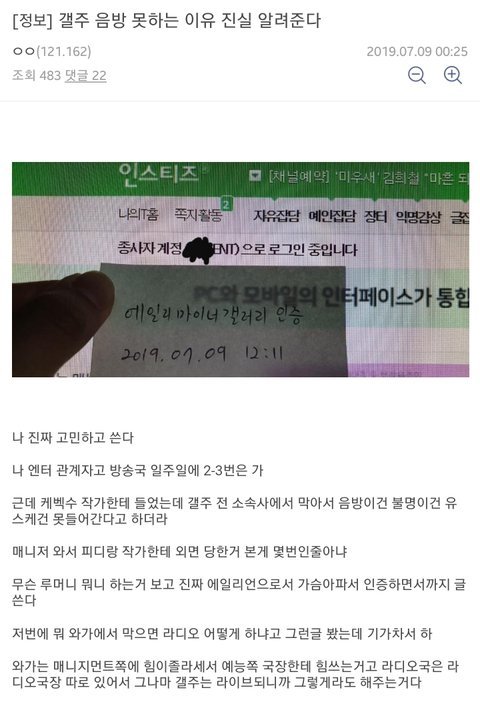 그리고 이 이야기 널리널리 퍼트려줘! 소중한 가수 한명 잃기 싫지않아?ㅠㅠ