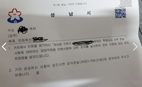 이에 화가나 신문고에 글을 올리고 어떤 조치를 취했는지 분실된건 맞는지 알려달라고 했고