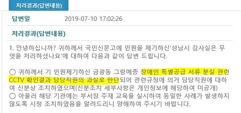 저희는 이 부분이 부당하여 신문고에 글을 올렸으나
