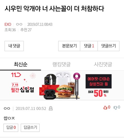 ⬇️시우민 악개야 너 사는꼴이 더 처참하다 여기서
