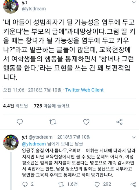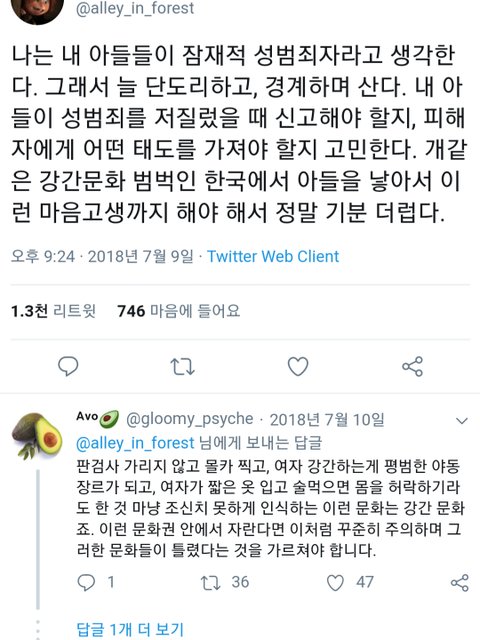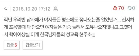 딸가진 엄마로서 가뜩이나 딸이 매일매일 밖에 나갈때마다 불안하고 조금이라도 연락이 안돼도 불안한데 또래 남자애들 만난다고 할때도 불안합니다. 사회에서 남자아이들에게 해주는 성교육이 부족하다면 가정에서 해줘야지요... 제발 아들만큼 딸들도 이상한 시선없이 안전하게 살수있는 사회를 만들어주세요