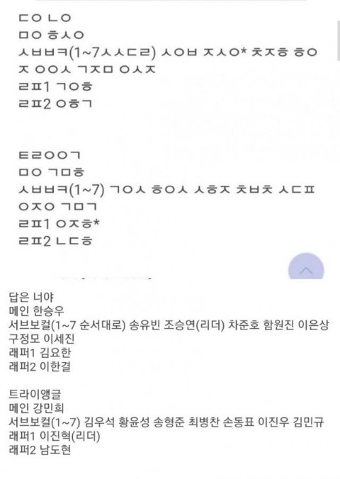 서브보컬(1~7) 김우석 황윤성 송형준 최병찬 손동표 이진우 김민규