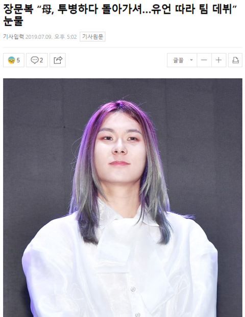 어머니는 장문복의 데뷔 장면을 보지 못한 채 세상을 떠나셨다고 ㅠㅠㅠㅠㅠ