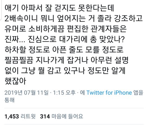 심지어 병찬이 선생님들 앞에서 울었어 이동욱이 재차말하지만 아프지말자는 그 전컷쯤에 울었어 그래서 김현빈이였나 최병찬 어깨 문질러준건데 그걸 그냥 운것처럼 보이지도않게 방송 내보냈더라 또 퉁퉁 부은발보고도 귀엽다하고 2배속보고 역시 븅찬이라고 웃던 팬들 자책하고 상심하게 만들었어 그리고 엠카 당일날에도 공지 안해서 병찬이 보러간 팬들, 프리뷰 없어서 속상해하는 팬들한테 뒷통수 제대로 쳐준거지 16등 한 후로부터 떨어질까봐 무서워서 열심히 투표하고 지하철 목격담 뜨고는 말로는 절대 아니라고했는데 엄청 불안해하면서 우리 병찬이 안떨어졌다고 열스밍 돌린게 병알단이야 정병 제대로 와 안오면 이상한거야 엠넷 일 똑바로 해 남은 애들한테도 그러지마