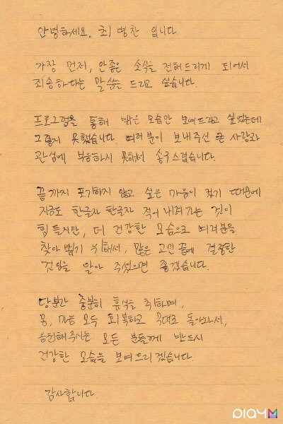 이건 최병찬 자필편지이고,