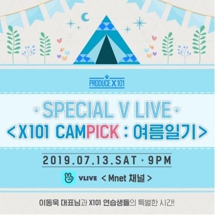13일 밤 9시에 진행되는 V 라이브에서는 연습생들이 이동욱 대표와 함께 국민 프로듀서들과 소통한다.