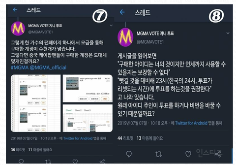 이런 단계를 거쳐서 불법으로 해킹된 아이디를 구매한 뒤 그 계정으로 개인이 하루에 수십번투표를 하고 있었던거임.