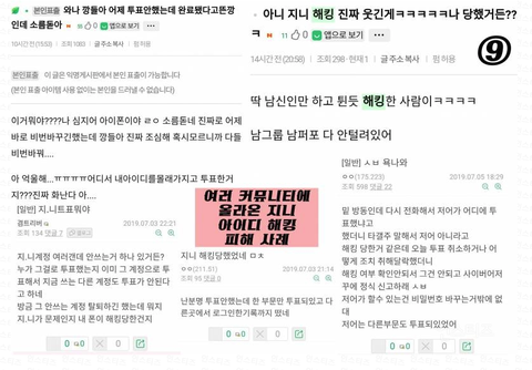 2. 알고보니 중국에서 수많은 한국 아이디를 해킹하고 구매해 불법투표를 학 있었다는 사실이 밝혀짐.