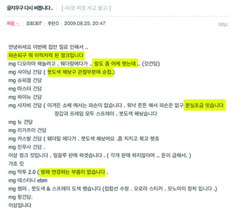 당시에 프라모델 정크가 실제로 거래되었던 내용들이 있음