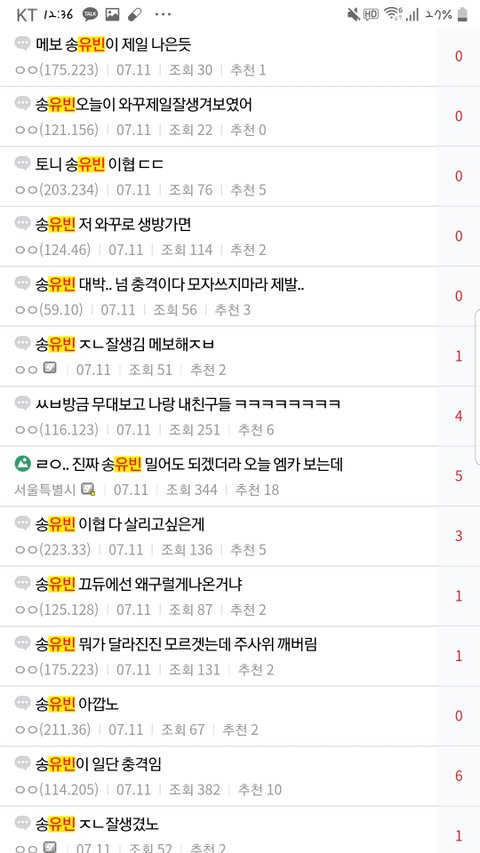 사람들 보는 눈이 다 같은지 커뮤 온에어에 송유빈으로 도배됨ㅋㅋㅋ심지어 프갤도;