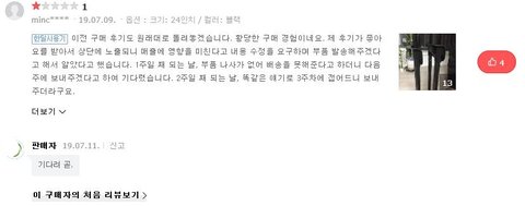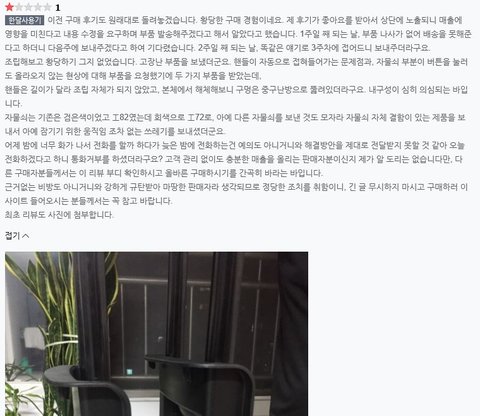 해당 리뷰 때문에 우리 제품의 매출이 급감했고, 큰 타격을 받고 있다.