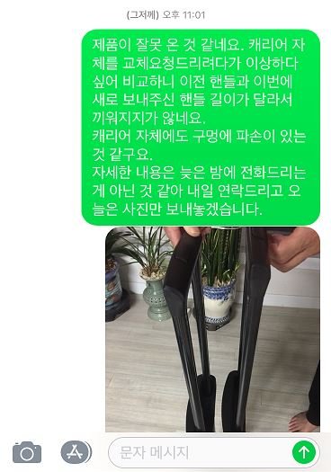 이미 말씀드렸고 캐리어 끌고다니는 긴 스틱 핸들과 자물쇠라고 얘기하자 알겠다고 하고
