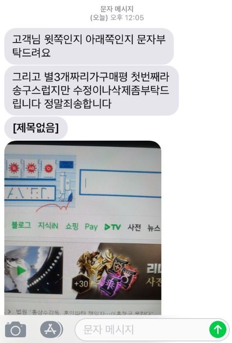 리뷰 작성하니까 조금 지나 문자가 옵니다.