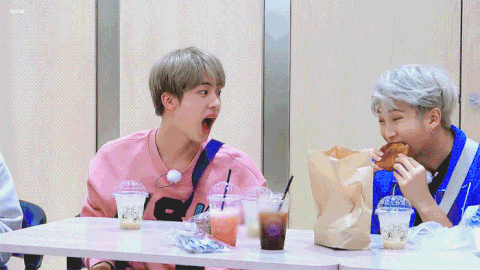 빵 먹는 김남준과 빵 달라고 입벌린 김석찐 눈 뜨고 코 베.. 아니 빵 주는 스윗가이 김리다 니들 너무 자연스러운 거 아니니? ㅋㅋㅋㅋㅋㅋ