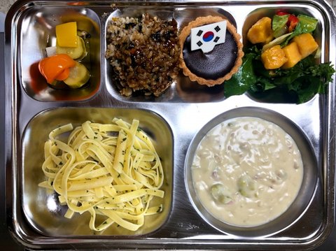 발렌타인데이 때 나왔던 급식이에요!크림스파게티 진짜 최고