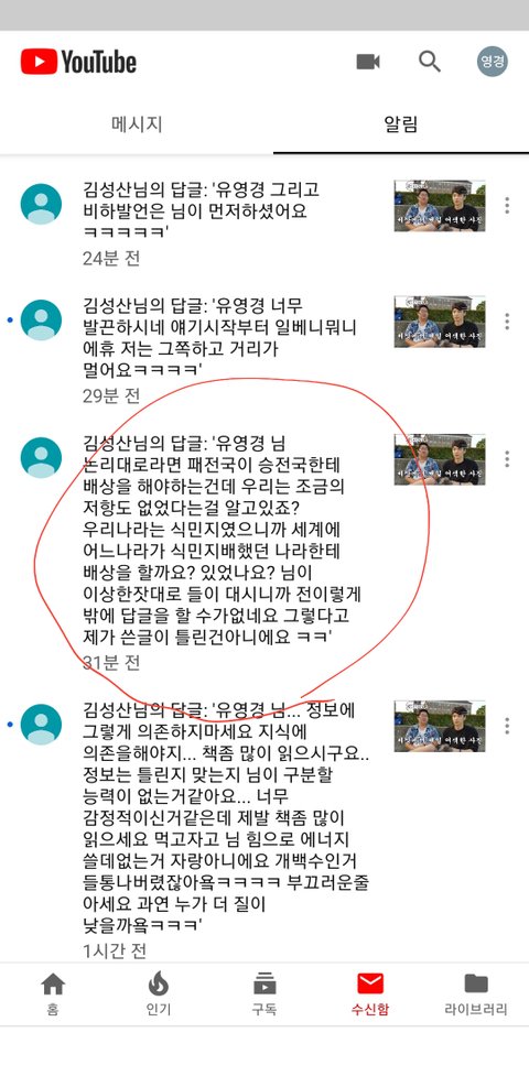 제목 : 현재 한일관계가 안 좋은 상황에 위안부 할머니들의 고충을 모독하고, 우리국민이 국뽕땜에 감정적으로 불매운동하고 한국은 식민국가라 보상 받을 자격이 없다는 유튜브 유저